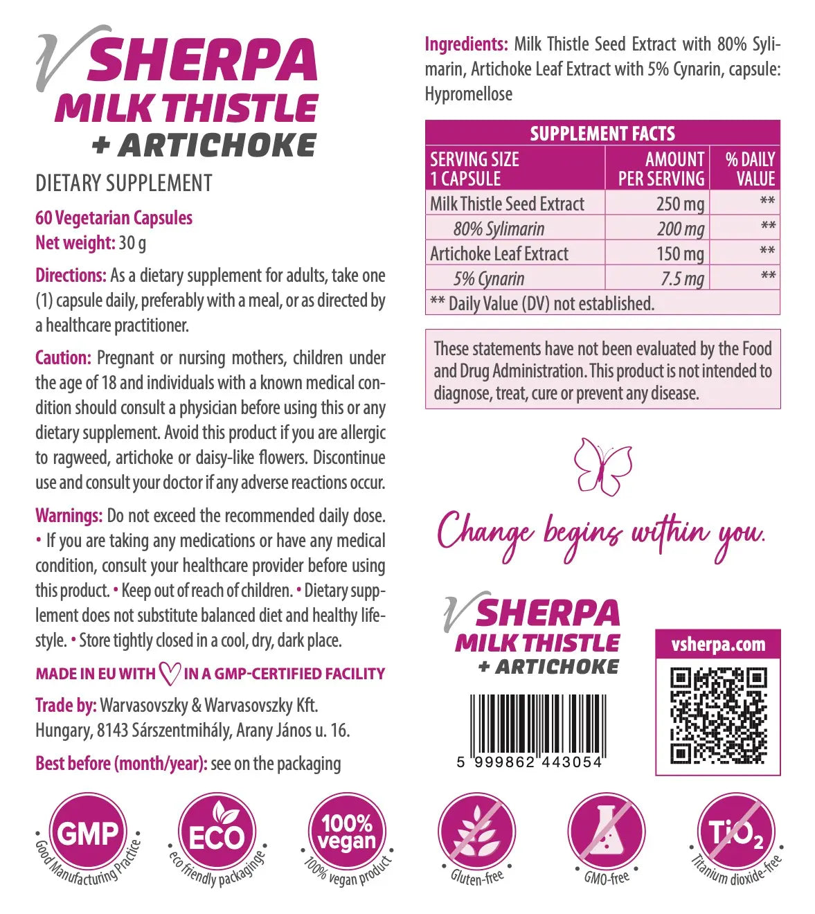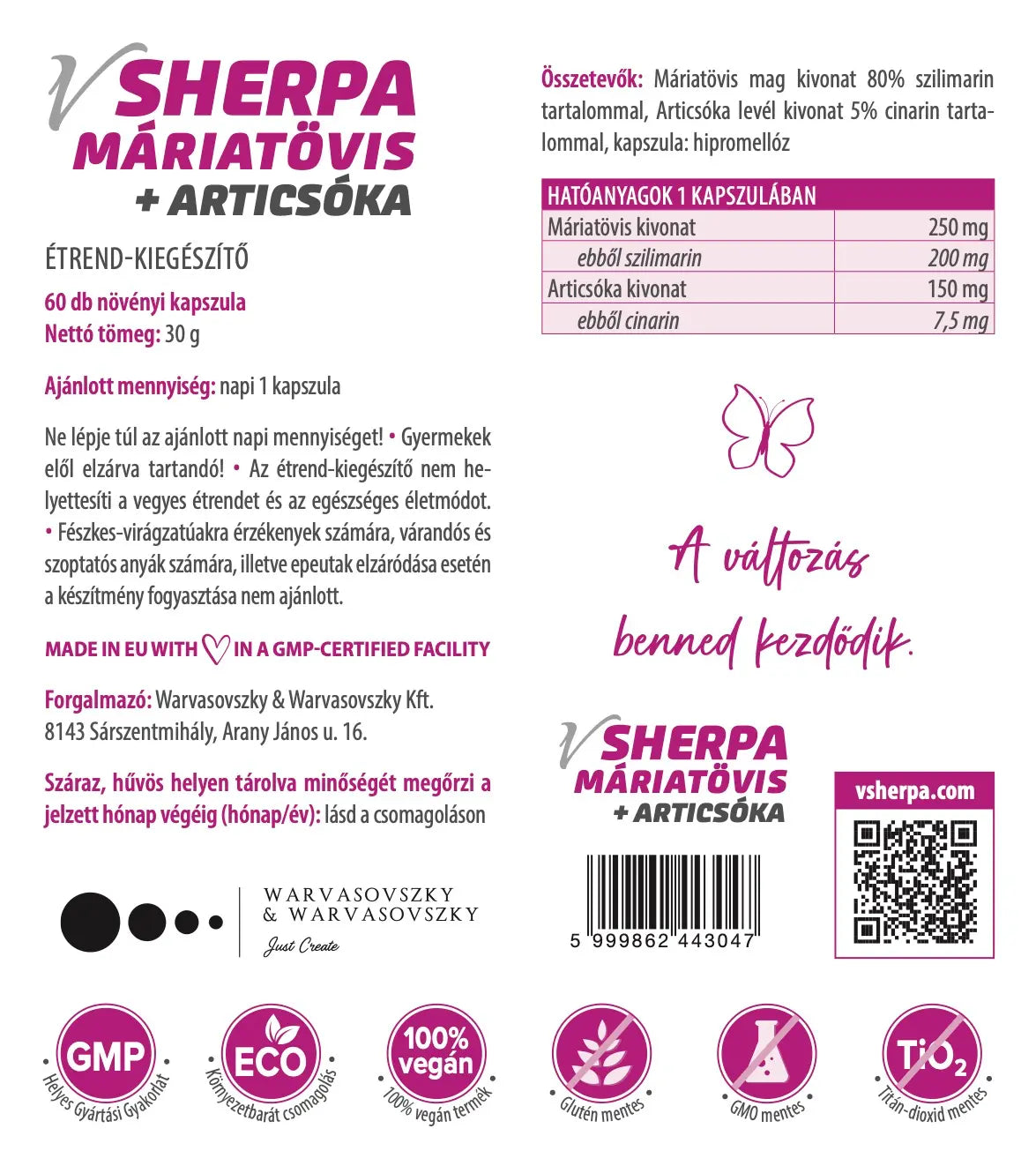 A vSherpa Máriatövis + Articsóka étrend-kiegészítő terméket azért alkottuk meg, mert a máriatövis és articsóka kombinációjával hatékony támogatást nyújt a máj és az emésztőrendszer egészségének megőrzéséhez. A termékkel szeretnénk hozzásegíteni egészségtudatos vásárlóinkat, hogy természetes úton erősíthessék meg immunrendszerüket, javíthassák általános jólétüket, és hozzájárulhassanak az egészségesebb életmódhoz.
