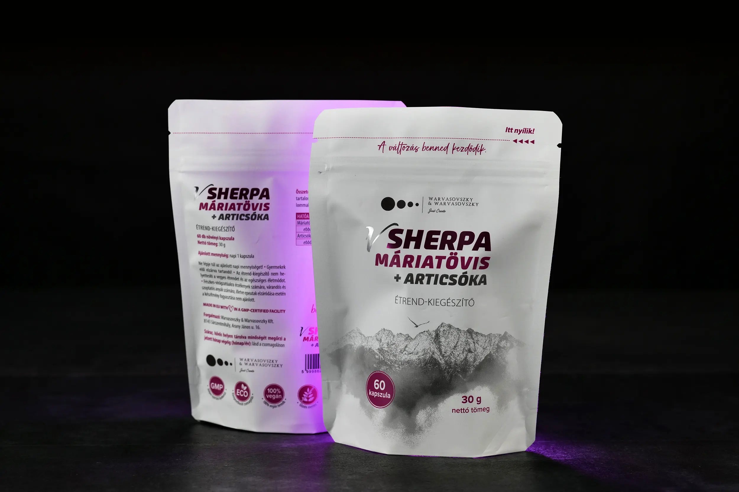 A vSherpa Máriatövis + Articsóka étrend-kiegészítő készítmény tasakonként 60 db vegán kapszulát tartalmaz.