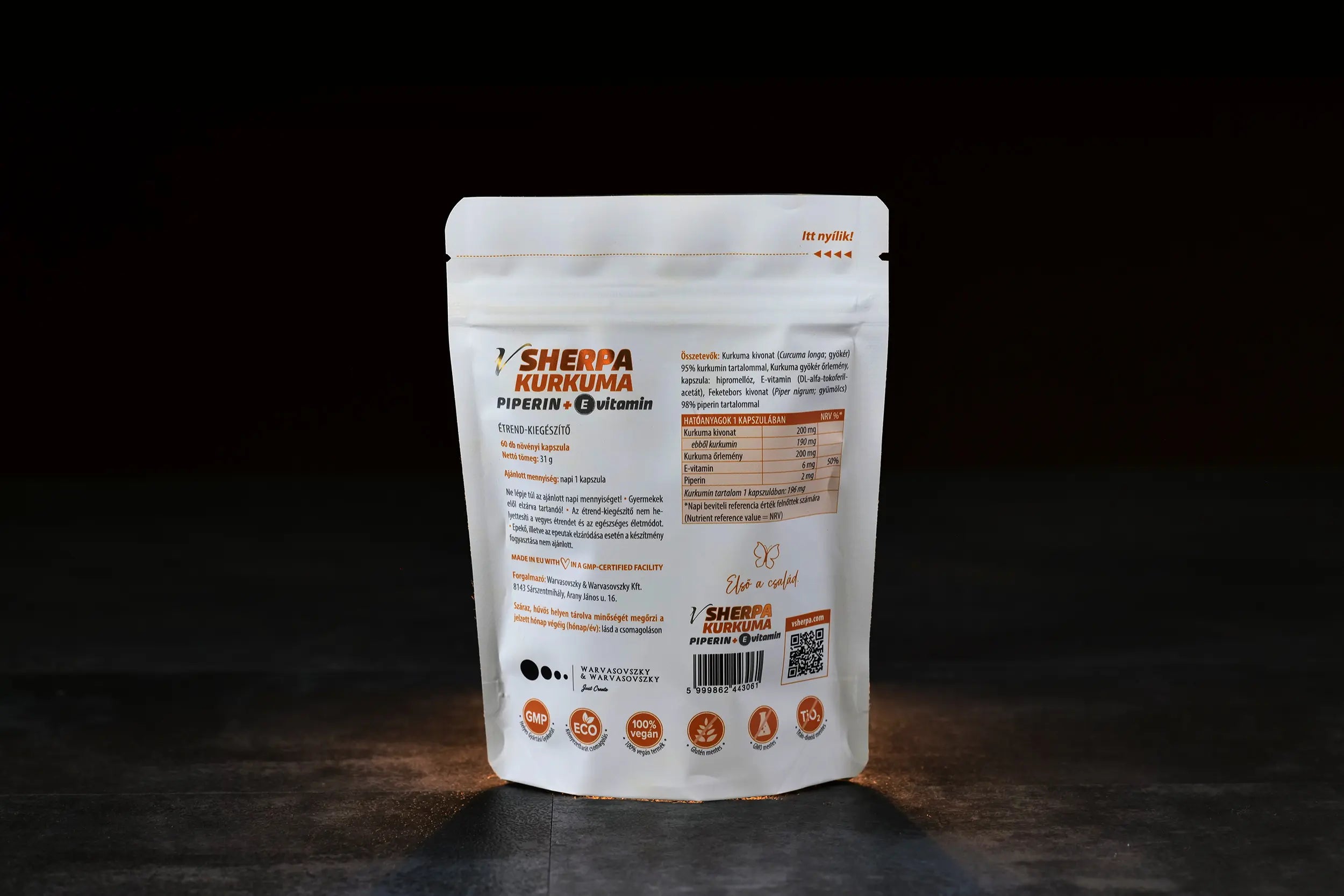 A vSherpa Kurkuma + Piperin + E-vitamin étrend-kiegészítő nem csak egy termék, hanem kulcs az egészség új korszakába. Ez a gondosan kialakított kombináció nem csak a természeti hagyományokat tükrözi, hanem a jelenkor innovatív megoldásait is. Az egészség, a teljesítmény és a vitalitás összhangját kínálja, úgy, ahogy azt csak a természet és a tudomány egyesítve képes megvalósítani. Fedezze fel ezt az újító formulát - ahol a természet és a tudomány kéz a kézben jár.