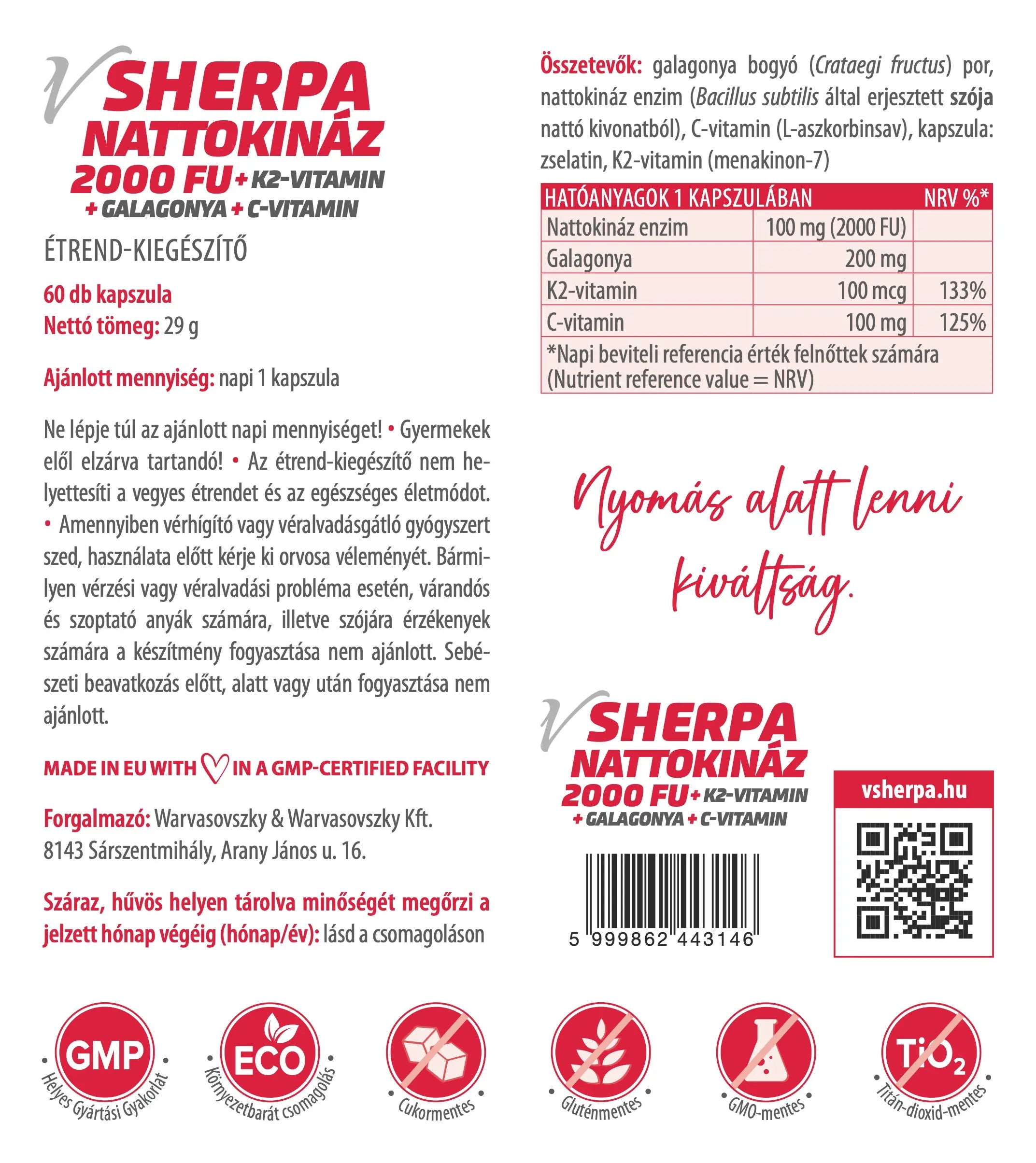 vSherpa Nattokináz + K2-vitamin + Galagonya + C-vitamin étrend-kiegészítő